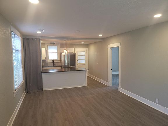 CHECK OUT THIS remodeled 2 bedroom, 1 bath home that features large closets, open kitchen/living area, central heat and air, vinyl floors throughout, spacious laundry area, enclosed front porch, two detached garages and one with an additional shop area.