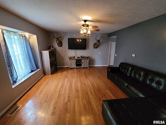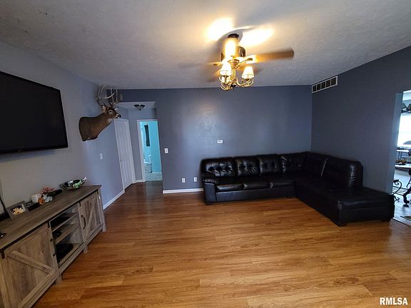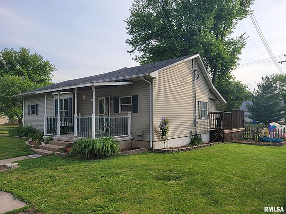 Comfortable Middletown, Illinois vinyl sided bungalow style home situated on a fenced corner lot! Interior features a roomy living room, generously sized eat-in kitchen with an adjacent pantry, rear mudroom/laundry with newer flooring, full hall bath, and two nice sized bedrooms -- front facing bedroom boasts an adjacent walk-in closet as well as an 8X8 office/dressing room! Property also features a covered front porch, rear deck, 24X32 2+ car detached insulated heated AND cooled garage with an overhead attic, and newer interior doors/trim. City water/private septic system on premises. Enjoy small town Logan County living with all the extras!