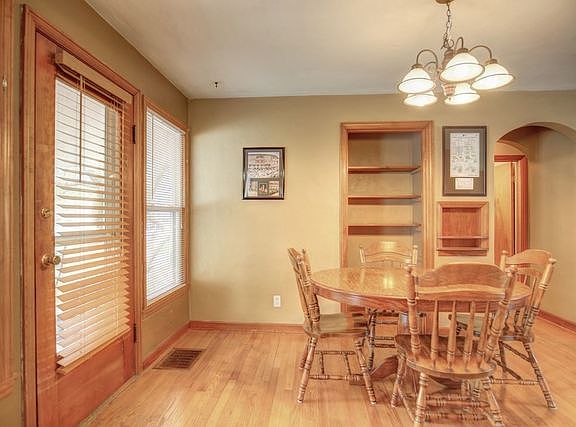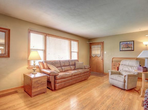 On a quiet, shaded street, this 2 bedroom home has it all. Inside you will find wood floors from the living room through the dining room and in the bedrooms. The kitchen opens into the dining area and offers plenty of space for meals and entertaining and opens to the living room. The full, unfinished basement has a family room area and separate laundry area. Outside you will enjoy the covered porch and good-sized flagstone patio that overlooks the large back yard. Replacement windows in all rooms but one bedroom and the bath.