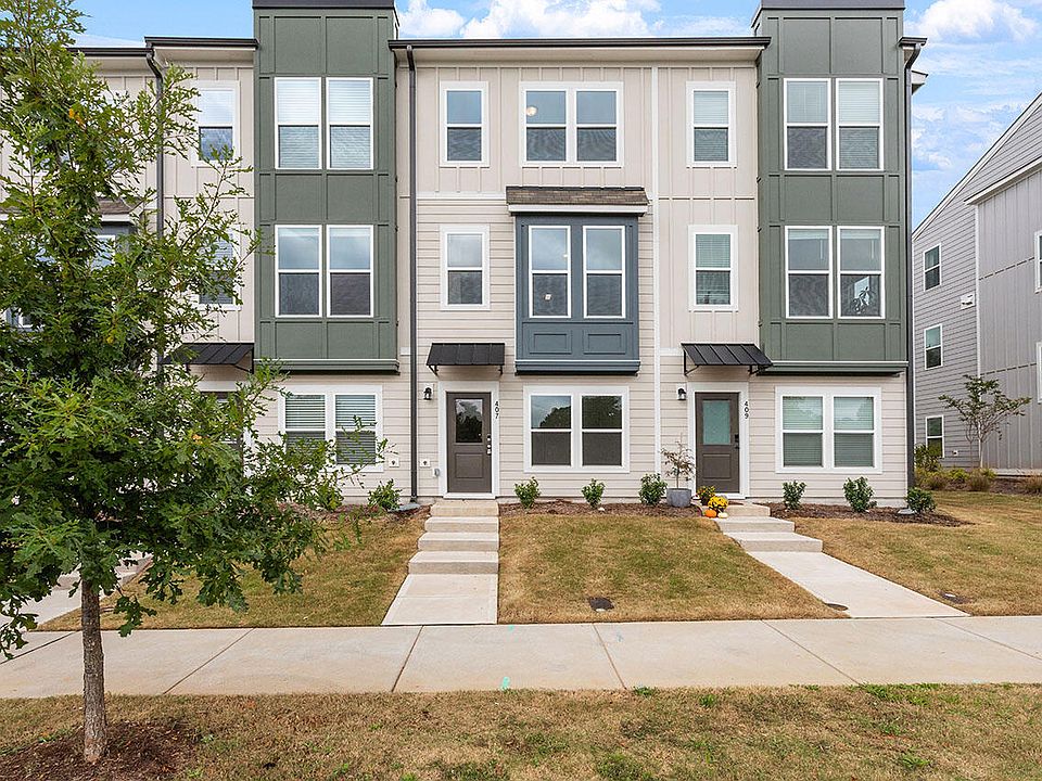 This charming new construction three-story townhome is ready for you to move in and make it your own. Boasting two spacious bedrooms and 1.5 baths, this home is beaming with natural light and features an inviting open floor plan, creating the perfect space for entertaining friends or simply relaxing. Welcoming great room, expansive kitchen, and generously sized island offer an ideal setting for hosting gatherings and enjoying shared meals. You can easily access your deck directly from the kitchen, making it convenient to step outside for a breath of fresh air or to enjoy outdoor meals with family and friends. Upstairs, you'll find two well-proportioned bedrooms, a large hallway bathroom with double vanities, and a convenient laundry area. The lower level offers a versatile space for an office, game room, or DIY area. Additionally, this level provides ample room for relaxation and socializing, along with plentiful storage. The home includes a one-car garage, which is another feature.