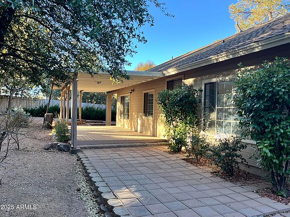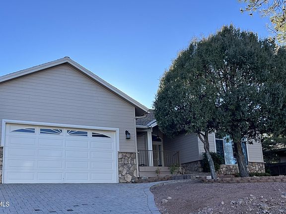Live in central Payson with all its amenities yet feel like you're in the forest. This is a rare opportunity in an awesome little pocket of nice sized homes on large treed lots. Beautiful stone accents with front patio make a welcoming feel under a rim country's signature Ponderosa Pine. Inside, cozy up by the electric fireplace and soak up the natural light and views with soaring ceilings above. Every room in this home has large windows for natural lighting. Spacious bedrooms, primary has new upgraded separate shower, dual sinks and walk in closet. Peaceful backyard features large covered patio with 2 BBQ stub outs, lots of trees, low maintenance landscape, and small shed/hobby room. Newer flooring, interior paint, hot water, and stainless appliances all in the last 2 years. Seller is a licensed agent in AZ.