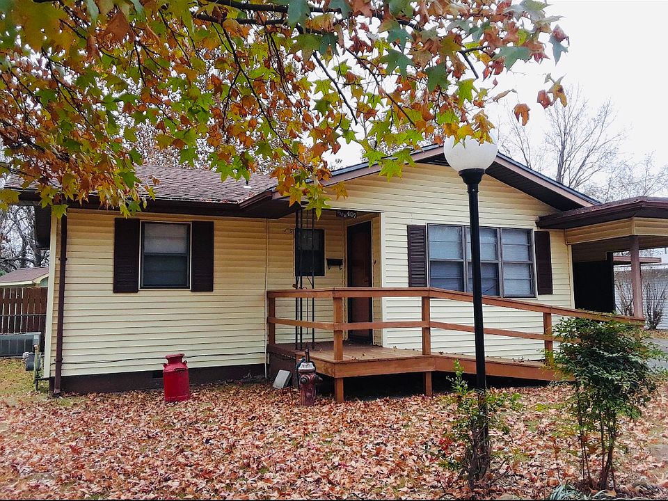 Great home for a family! Large fenced in back yard with view of a pasture beyond the yard, 3 outbuildings for storage, large patio with pergola, mature trees, attached garage with front and back overhead doors, storage cabinets and work bench, 2 carports, central heat and air, attic fan, all new light fixtures, roof replaced 8/2017, new hot water tank, 2017, gas dryer included, large den with wood burning stove and new ceiling fan, new blinds in bedrooms and living room.