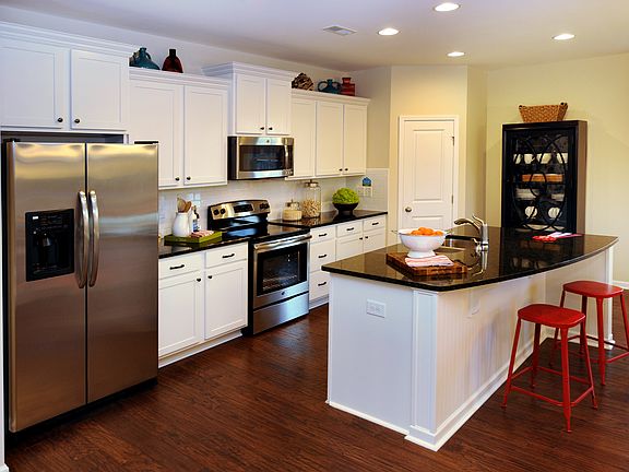 Move in ready for April 2015! The Bailey B end unit (same floor plan as model home) is a rarity indeed as it is located next to a grassy common area within the community. The interior of this house is sure to impress with its 2 story living room that features tall & dramatic ceilings, upgraded 5" hand-scraped hardwood floors throughout the 1st & 2nd, & oil rubbed bronze accents. The kitchen is truly the gathering spot in this layout with it's white cabinets that contrast the large accent island with darker 'Java Glaze' cabinets. Giallo Ornamental granite counters line both the kitchen & the master bath and Sherwin Williams 'Sea Salt' will be painted throughout the home (don't forget to come in & pick out your 2 free "accent" walls at time of contract!). Upstairs features the 2 secondary bedrooms & the master suite which includes a walk in closet, trey ceiling, dual sinks in the master bath, and tile accents on the master bath floor & walk in shower surround.
