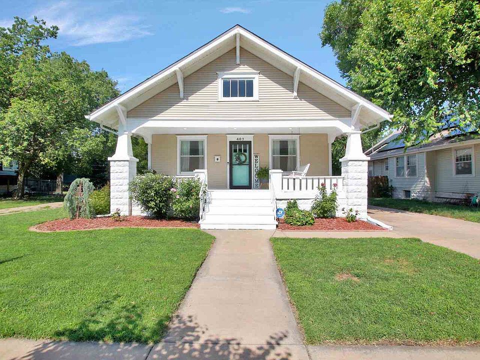 WHAT A FIND?! - THIS WILL NOT LAST LONG! A fully and tastefully updated bungalow in the heart of the highly sought after College Hill neighborhood. This impressive gem is surrounded by beautiful mature trees and the charm of the property draws you in at first sight. A delightful covered porch greets you and serves as a terrific spot for relaxing and gathering with neighbors. Upon entering, you are welcomed into a gorgeous main living space with stately fireplace, brand new built-in shelving, hardwood flooring, all new interior paint and tons of natural light. Natural flow into the formal dining will be perfect for entertaining while the ALL-NEW updated kitchen is a showpiece in this home! It has been fully remodeled from top to bottom. If you haven't seen the "before" photos, you're going to want to see them to truly appreciate the new space and amenities!! All new cabinets, appliances, countertops, backsplash, and lighting. Goodbye to the old main floor bathroom and hello to the fully remodeled hallway bathroom. Like the kitchen, this space has been fully reimagined with new vanity, new shower door, full tile surround, new window, toilet, etc. All bedrooms are on the main floor, each with their own designer touches and each with gorgeous hardwood floors, new lighting and paint. Upstairs is another major point of attraction; a loft that could work as an office, 4th bedroom or dedicated master closet! All updates were done in keeping true to the character of College Hill. In total, this home offers almost 1,800 finished square feet, so there is plenty of room for your all of your needs. Outside, the yard is tastefully landscaped and a fully fenced private backyard with tiered decking, terraced rock water feature, detached two car garage, and low maintenance landscaping. A spacious and open main floor plan featuring great flow and perfect for entertaining, an abundance of windows for natural lighting, built-ins, stately fireplace, remodeled bathroom, and fantastic outdoor living. This home is close to all the cool spots of the College Hill community; Clifton Square, local shopping, dining, schools, and great parks are just a walk away. A perfect home in one of Wichita's perfect neighborhoods! Don't miss this one; call now to schedule your private showing!