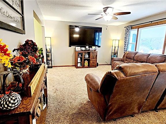 Owner's pride shows in this 3 bedroom 2 full bathroom home. Owner's have updated the home throughout time of ownership by adding new windows @2021, new roof @2010, new laterals for septic system @2011, new deck @2018, newer countertops & dishwasher, newer wood flooring, newer lighting, freshly painted except in 2 bedrooms, updated the sunporch off the kitchen, ect. Beautiful home has a sizeable living room with large windows letting in the natural sunlight. Kitchen set up is really adorable & functional with an island, coffee bar, pantry, large amount of counter space and room enough to put a large table for large family gatherings. Love to entertain? This kitchen area has great flow from the living room, to the dining room/kitchen, to the sunporch and to the refurbished large deck! Still need more room for outdoor functions? This home rests on .76 acres of practically flat ground to do almost all the fun outdoor activities you would love to do! Still yet, there is another area to entertain, and that is the very large living room in basement! Owner's bedroom & other 2 bedrooms are very large, have large closets and bright & airy. Hall bathroom is huge with a newer bathtub, lighting and vanity. Owner's en-suite has a newer vanity and latrine. Basement has another area for storage, laundry and mechanics area. The garage is huge as well, plenty of storage area too!