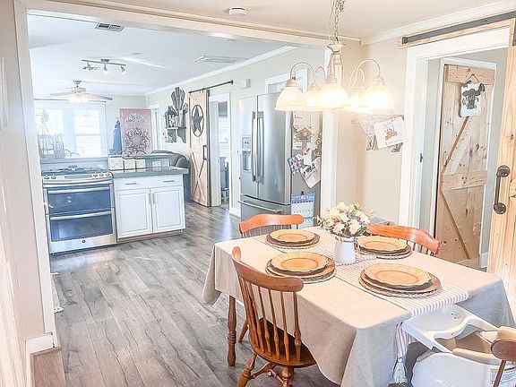 New windows throughout. Central heat and air with addition wall heater for power outages. Newer updated kitchen appliances that stay with the house if buyer is interested. House features a great outdoor living area with single car garage with electrical just built in 2022. Open porch doubles as carport. Additional storage shed as well. Partially fenced yard that would not take much to fully fence in.