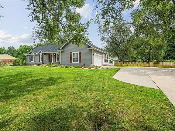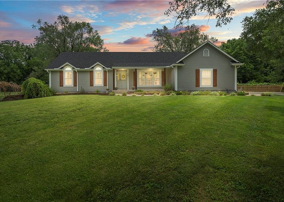 Charming Ranch Home in Prime Lees Summit Location - 407 NW Ward Rd, Lees Summit, MO 64063. Nestled on a serene 0.93-acre lot, just minutes from the bustling downtown of Lees Summit, this meticulously maintained 3-bedroom, 2-bathroom ranch-style home offers both comfort and convenience. The property showcases a harmonious blend of modern updates and spacious living areas, making it a perfect setting for both relaxing and entertaining. The home features a variety of living spaces including a cozy living room with a striking wood accent wall, a large family room anchored by a classic fireplace surrounded by stylish white tiling, and large windows filling the space with natural light. Enjoy preparing meals in the updated kitchen equipped with stainless steel appliances, pristine white cabinetry and granite countertops. The bedrooms offer plush carpeting and ample storage, while the master suite boasts a sophisticated paneled feature wall. Bathrooms are modernized with high-end fixtures, including a walk-in shower and dual vanities. Additional features includes a large covered patio overlooking the lush backyard—ideal for outdoor gatherings or serene evenings outdoors. 30x40 Outbuilding with power and water supply, pre-plumbed for an additional bathroom, offers potential for a workshop, gym, or additional storage. A vast unfinished basement with 9-foot ceilings provides a blank canvas to create your dream space. It’s pre-stubbed for a full bath, offering numerous possibilities for customization. This property combines the tranquility of spacious, landscaped grounds with the accessibility to urban conveniences, making it a must-see for those seeking a peaceful retreat within proximity to city amenities. Don’t miss the opportunity to own this impeccable home in a sought-after location.