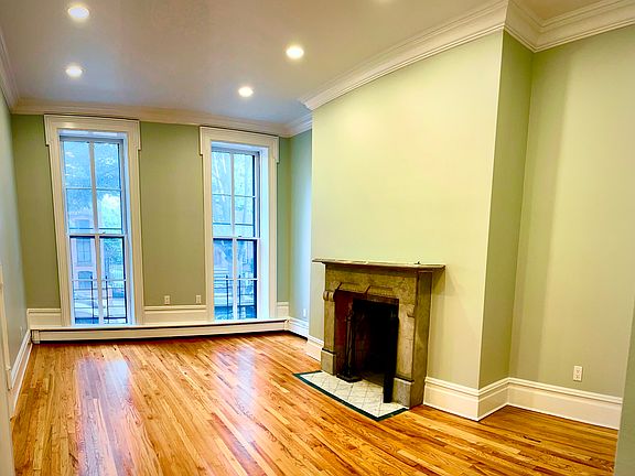 Stunning renovations in historic landmarked 1860's townhouse in the heart of Boerum Hill! All original details restored by owner to capture the spirit of the Golden Age, but infused modern appointments for the comfort of the discerning tenants of this era. Extra high ceilings and massive windows to let all the natural light in. LED lighting throughout with dimmer switches so you never have to change a light bulb. Gorgeous red oak floor in Living room and bedroom. Super modern single galley kitchen with galaxy granite counter tops with under counter mounted stainless sink. All new gas stove, microwave, dishwasher and Fridge. From the kitchen exits to your private steel deck then down into private backyard ready for landscaping. Queen sized bedroom, 3 large lighted closet (including "Harry Porter bedroom" pantry in the kitchen.) Wood burning fire place; very cosy in the Winter months. Laundry suite in the unit. Very comfortable used by single or couple professional tenants. Non- smoking building. Cats are Ok but not dogs.