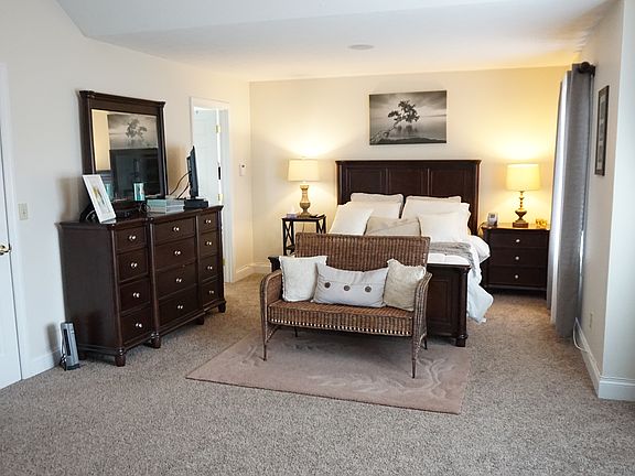 Fantastic end unit townhome. Fresh & modern color palette throughout the home. Spacious family room with plush wall-to-wall carpet, gas log fireplace with ornate mantle, bump out reading nook and bay window. The kitchen boasts light wood cabinets, glass mosaic tile backsplash, durable ceramic tile floor, island, pantry & stainless steel appliances. Open concept kitchen & dining area. Step from the dining room through French doors onto the deck. Perfect for grilling. Retreat upstairs to 3 well-appointed bedrooms, including the master suite. En suite features a jetted soaking tub, separate shower, two single sink vanities & water closet. An additional full bath completes the upper level. The lower level of this home is completely finished and includes a game room, laundry room & powder room. Entertain guests or dine al fresco on the deck which runs the length of the home and has room for a large dining table and has wooded nature views. 2 car integral garage.