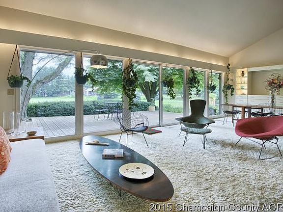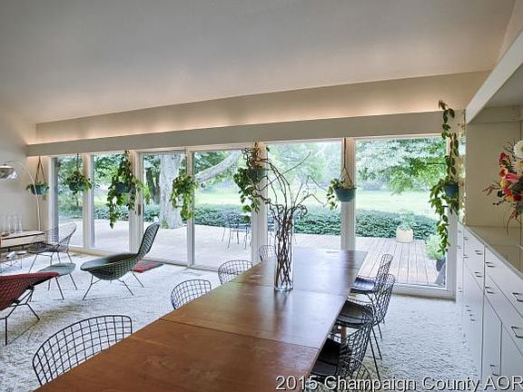 Mid-Century home designed for the quality of life! Wonderful windows floor-to-ceiling bring the outside in. The kitchen overlooks the Living Room and enjoys the view as well. This is the home designed and lived-in by U of I architecture professor Walter Lewis. His office was designed to be above the kitchen and overlook the living room as well. The exterior view is open and long as a Savoy retention basin adjoins the lot on the south side. Master Suite could be enlarged. Bedroom 2 features a private sink. This home has space for showcasing an art collection, somewhat private family room and a partial basement. A real treasure for the lucky new owner!