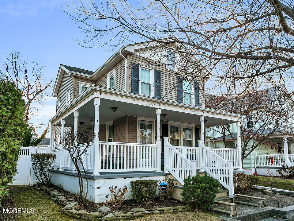 Welcome to 407 Park Place Avenue in Bradley Beach! This beautiful 3BR 2BA Colonial offers a wraparound rocking chair front porch, and a back yard oasis with large deck and hot tub landscaped for privacy. Large primary bedroom with cathedral ceilings and a laundry room conveniently located on second floor. Shed for storage. Just three blocks to beach!