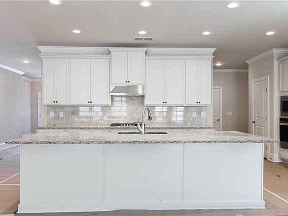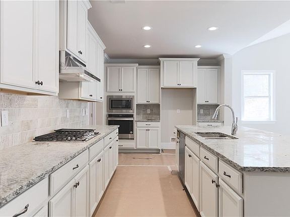 - Kitchen Features: Breakfast Bar, View to Family Room, Kitchen Island, Pantry Walk-In, Breakfast Room, Solid Surface Counters, Cabinets White