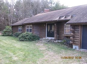 Center Barnstead - Three Bedroom, 3 Bath Lincoln Log home on 9.58 acres. Open concept design, tiled floors in family areas, and pine throughout. Sunken living room has whole wall built-in shelving unit, wood stove hookup and brick hearth. Kitchen sports handcrafted island top, double wall ovens. Dining area off kitchen with French doors to the backyard. Extra room for use as formal dining room or office. Master bath has marble floors, jetted tub, separate glass shower, and tin ceilings. Mostly completed three-season porch off back of attached, oversized two-car garage. Four outbuildings for storage, workshops, animal housing, with electricity to one. Approximately two open acres. Fruit trees, berry bushes and gardens. Nice setting, stone walls.