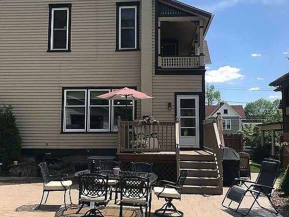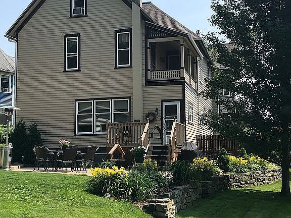 This classic Victorian reflects a pride in ownership that you don't often find these days. Outside you will appreciate original details, stamped concrete patio & oversized, heated 2 stall garage. As you step into the foyer, you will find the first of 3 fireplaces, original woodwork, & grand staircase. Pocket doors lead to the enormous living room where you will find another fireplace. The updated kitchen features custom cherry cabinets, built in stainless appliances, Corian countertops & an additional dining area that overlooks the backyard. The main bedroom features the third marble fireplace & attached bathroom. The main bathroom features a claw foot tub, heated tile floors & walk in shower. From the back bedroom you can access the covered balcony, perfect for enjoying a glass of wine or cup of coffee. The third floor hosts the last bedroom, as well as a large attic space with cedar lined walk-in closet. Additional features include an updated HVAC system (2021).