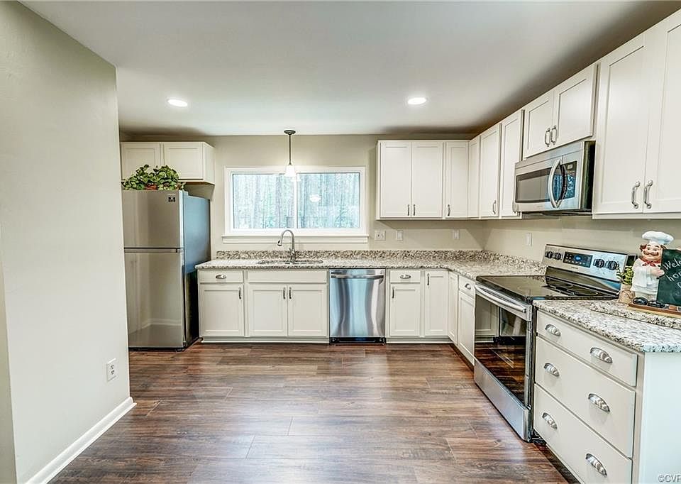 Fully remodeled 3 (possible 4th/In-Law Suite) bedrooms and 2 full baths conveniently located near Chesterfield Towne Center and all the major shopping plazas of Midlothian and N Chesterfield. New kitchen w/soft close Shaker cabinet doors and dovetail drawers, New Granite kitchen counters, Recessed lighting, New SS Samsung appliances, New Laminate flooring in the Living room and Den, New Carpet in all the bedrooms and in the Family/2nd Master Bedroom w/Sliding door downstairs. Freshly painted interior, new ducts, new closet bifold doors, and all new lighting fixtures. 2018 Roof and Gutters, 2018 14x18 Concrete Patio, 2015 HVAC, 2017 fence and detached shed. New Ceiling Fans w/lights in the Living room and Family/2nd Master Bedroom/In-Law Suite. New Double Vanity w/Granite vanity top and Ceramic Tile floor in the upstairs bathroom and a new oval corner shower downstairs. Paved driveway and a cul-de-sac location with the entrance to the neighborhood trail, leading to North Courthouse library and a pond right next to it. Move right in and have nothing else to do, just unpack. We hope you call it HOME!