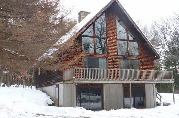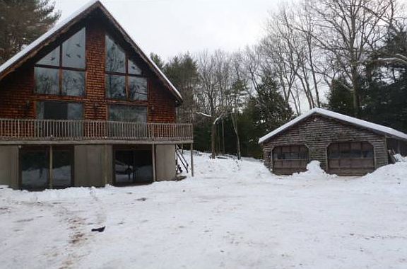 Country living can be had with this contemporary style property home in Candia. This 6rm 2bedroom home has two large wood fireplaces and cathedral ceilings with exposed beam and large custom glass windows to let all the natural sunlight in. The home sits on a 3.32 acre lot and the home sits way back with tons of privacy and has a long lighted driveway and a detached two car garage. This is a Fannie Mae property.