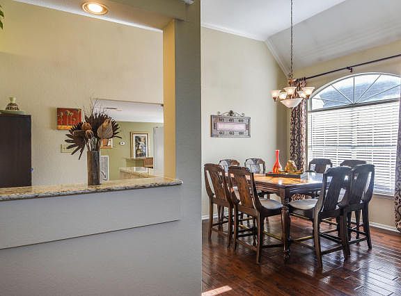 Charming, one level home in Valley Ranch! Freshly painted exterior with great curb appeal, property is ready for its new owners. Wood floors and wet bar with granite in living and dining. Kitchen is updated with granite and boasts stainless steel range and microwave, breakfast bar and breakfast area. Breakfast area would also make a super second living area. Spacious master suite boasts updated bath with frameless shower enclosure, garden tub and granite top vanity. Guest bath also updated with granite! Wonderful side and rear yard with deck and ample grass for playing. Great opportunity to own in desirable location!