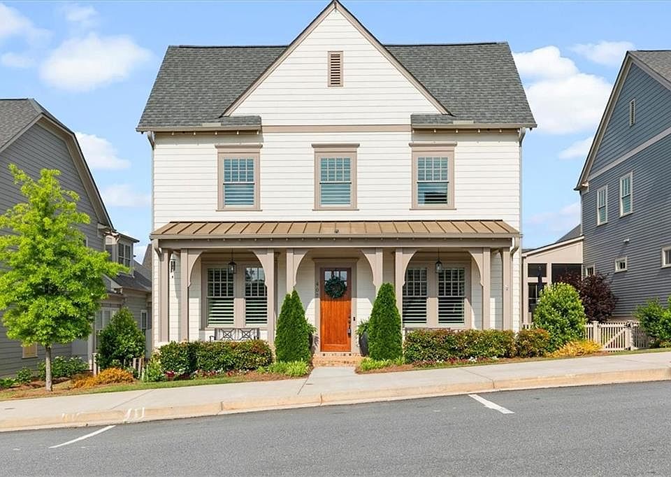 Experience the epitome of luxury living in this stunning newer home nestled in Downtown Woodstock's highly coveted community of South on Main. This home was the winner of the prestigious Obie Award for its exemplary design and architecture, this residence offers an unparalleled lifestyle with access to exceptional amenities including a community garden, clubhouse, event barn, pool, and an amphitheater hosting movie nights, concerts and food trucks. Enjoy the convenience of walking to downtown dining and shopping while being part of the acclaimed Cherokee County School district. Just a short 10 min walk to Downtown Woodstock filled with things to do and a stunning atmosphere. South on Main backs up to the wonderful Woodstock Trails with miles of walking and cycling available. Boasting 4 bedrooms, 3 full bathrooms, this home is both spacious and functional with the primary bedroom on the main level. Two bedrooms on the main is an ideal floorplan offering so many options. The gourmet kitchen is a chef's delight with its large center island, quartz counters, and top-of-the-line appliances including a wall oven, gas cooking, and an inset refrigerator plus a walk in pantry. The primary bedroom on the main floor exudes elegance with hardwood floors, abundant natural light, and a luxurious ensuite bathroom featuring double raised vanities, a freestanding soaking tub, and a large tiled shower with multiple shower heads and bench seating. The primary closet will complete your life with its hardwood floors, tall ceilings and custom closet system for optimal organization. Custom 4.5 inch plantation shutters throughout, custom made draperies, and upgraded lighting throughout add to the allure. The professional design of this home brings in modern accents and an luxury feel to this amazing home. Step outside to the added screened-in porch with a gas fireplace and plenty of seating for guests to relax and unwind, perfect for enjoying the serene outdoor ambiance and added privacy. For added convenience, you will love the permanent gas line ran for your grill. Never be left without the ability to grill!! Plenty of guest parking at the front of the home for your guests to easily visit. Other highlights include a security system, epoxy garage floor, covered front porch, and a spacious laundry room with sink, gorgeous tiled floors and cabinetry. The upper level boasts a large TV room accented by gorgeous professionally designed walls, two additional bedrooms, and a full bathroom. The walk in attic is gigantic and offers plenty of storage space for all your extra things and décor items with ease of access. With its impeccable design and premium features, this home offers the ultimate blend of comfort and sophistication, making it a must-see for discerning buyers.