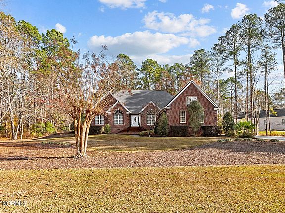 Must Sell!!!! Enjoy all that New Bern has to offer without paying New Bern taxes!! Welcome to the best kept secret in Pollocksville: The Home Place. Every home is unique with sprawling, mature oversized lots. This stunning 3,785 SF brick home is nestled on just over a 2 acre manicured lot. This home features 4 bedrooms, 3 1/2 baths, a large office, bright sunroom, large living room with a gas fireplace! Gorgeous kitchen with granite countertops and a gas stove. Hard wood floors throughout. Relax upstairs in the HUGE finished room over the garage. Attic access with tons of storage! Large lush yard with gardens and trees throughout...enjoy your outdoor space by the firepit along side the naturally fed KOI pond! All appliances convey including washer/dryer and spare refrigerator. Brand new water heater- December 2022. Many rooms were just freshly painted. Conveniently located just 8 miles from downtown New Bern, 18 miles to MCAS Cherry Point, and 10 miles to the New Bern business district. There is a transferrable home warranty.