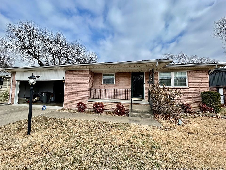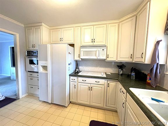 CHARMING 1 story brick home sits up high w/small covered patio overlooking front yard. Close to Tulsa Airport, Tulsa University, & shopping. The garage has shelves & workroom. The living, dining, & bedrooms are painted a soft gray w/original hardwoods underneath carpeted floors. Kitchen includes refrigerator, stove, & microwave & laundry room closet w/washer and dryer. The backyard has chain link fence and spacious green grass lawn w/concrete patio. Great for investor, rental, or your own home sweet home!