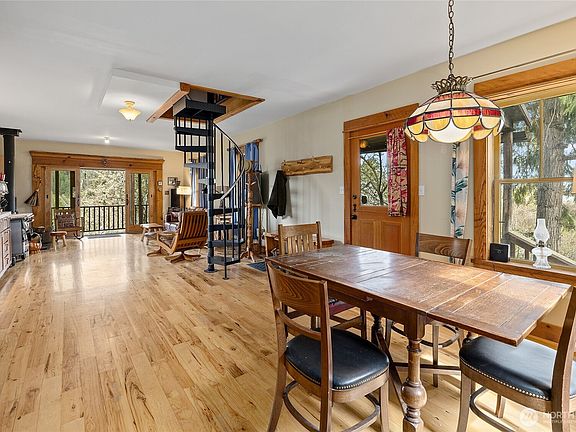 Enjoy panoramic territorial views from this charming, secluded Roslyn retreat—just a short walk to downtown and all the great shops and restaurants! Thoughtfully updated while preserving its historic character, this home features hickory floors, a cozy woodstove, Dutch door, and glass doors with sidelights showcasing views of the ridge, Brookside, and #4 Mine District. Inside, you'll find the original clawfoot tub, stacked washer/dryer, a restored basement foundation, and a wrap-around porch. The 7,000 SF lot offers a fenced area, garden beds, fruit trees, off-street parking, and timeless Roslyn charm.