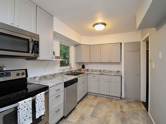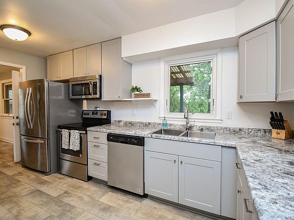 Welcome to this cute 3 bedroom, 1 bathroom, 1.5 story home offering 1,488 sq feet of delightful living space! Step inside to discover a spacious living area with huge picture window, updated kitchen with stainless steel appliances, expansive, bright dining room, and bonus living room area - perfect for a playroom, den/library, or home office. Main floor hosts two bedrooms and full bathroom, while the third bedroom upstairs has ample room for relaxation, play, or creativity. Outside, the peaceful backyard features a 3-season porch and covered deck, perfect for soaking in the sounds of nature in the mature trees – including mulberry trees! Store all your tools in the shed and enjoy the patio and fire pit – perfect for summer evenings! The lower level is a blank canvas, ready for your ideas and equity-building. Conveniently located near schools, parks, the bike trail, downtown, and the interstate, this home is a gem!