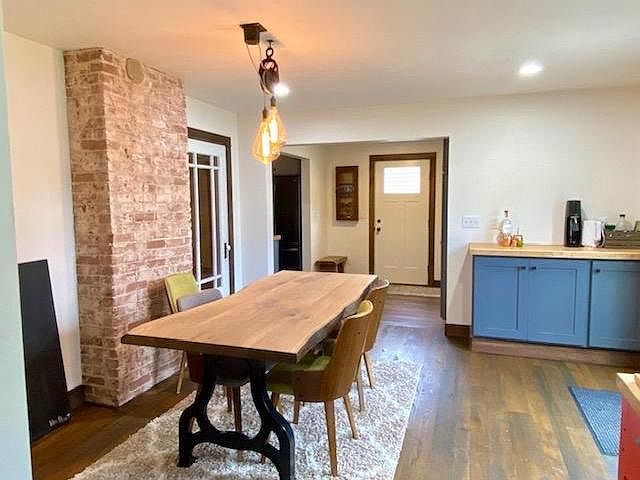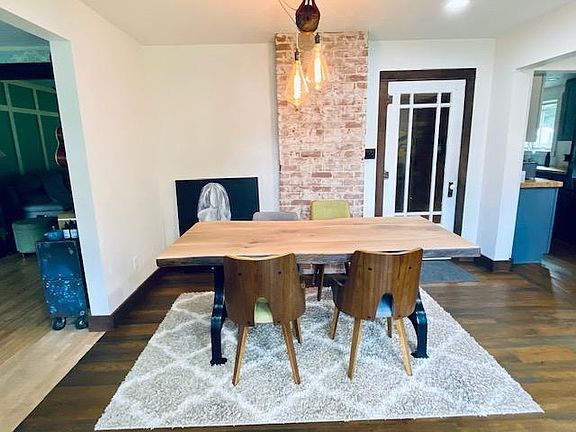 A classic historical home with a brand new focus on energy! The newly remodeled custom work completed on this 3 BR, 2 BA home offers modern efficiency and true uniqueness! The home features an all new galley kitchen with premier cabinetry and custom countertops, exquisite hardwood flooring throughout the home, unique hand-made lighting fixtures, a new efficient cozy gas fireplace in the spacious living room, original wood work and brick accent wall, a new bar area in the new dining room, main floor bath with a claw tub, and a bonus office/family room. Other amenities include an upstairs tiled showered, new walk-in closets, a lower level family room with a gaming area and laundry area, and all new pine siding. The spacious double lot includes a concrete driveway, 3 car garage, fenced yard with a small shed, several fruit trees, stamped concrete path and beautiful landscaping. Original charm with all the updates necessary for modern living! This is a must see!!
