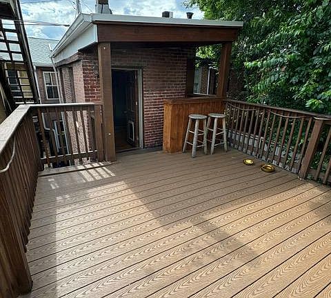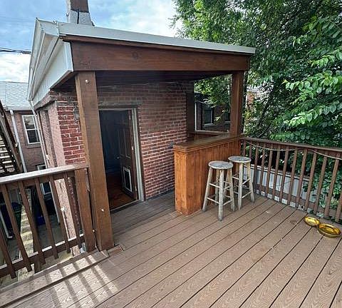 FRESH PAINT! Adorable home on a wonderful block in Upper Fell's Point. Wood floors throughout, the living /dining area offers ceiling fans and a toasty gas fireplace for the chilly months . Gourmet kitchen with eating area leads to the first full bath with a Jacuzzi tub, the exterior space with a nice sizeable shed providing extra storage. Upstairs you will find Two bedrooms, One large vaulted ceiling walk through bedroom with a gas fireplace and a skylight that cranks open. Since it is a walkthrough, This room is perfect for a second lounge, office, exercise room or baby suite. Primary bedroom overlooks the quiet block with bright windows, ceiling fan and beautiful wood flooring. Locate down the hall is laundry area , a gorgeous NEW full bath with a spa shower and unique touches, and steps into a welcoming second story low maintenance private deck with a built in bar. The best part of this home is that the ROOF< HVAC< PLUMBING< 200 AMP ELECTRIC are ALL NEW.