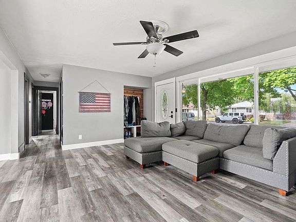 Discover the charm of this 4-bedroom, 1.5-bath rancher nestled in Spokane Valley. Multiple updates including: new trim, baseboards, new LVP flooring & tile in the bathroom. This home combines modern convenience, with farmhouse flair through unique, custom-built ins using reclaimed wood. The updated kitchen boasts stainless steel appliances, new butcher block countertops, new cabinets and ample space for entertaining. Downstairs, a large family room, a fourth bedroom (non-egress) and .5 bath offer additional living space, with provisions to add another bathroom. Outdoors, enjoy the spacious backyard complete with a deck, covered patio, and storage shed—ideal for RV & boat parking. There's a chicken coup and kid's play set as well! This home has the potential to add a garage in the back, with direct access through the existing gate on the left. Recent upgrades include a newer roof, high-efficiency furnace and tankless water heater installed in 2020 and 2022, respectively, ensuring comfort and energy efficiency.