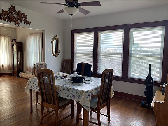 Nicely maintained 2 bedroom, 1 bath home with 3-car detached garage. Hardwood floors through most. Galley kitchen with appliances included. Updated bathroom with walk-in shower. Nice-sized living room and separate dining room. Full clean basement with additional shower, washer/dryer, water softener and storage hutch that stays. Replacement windows through most. Newer plumbing and updated wiring and breaker box. New hot water heater 2016 , sump pump and GFA furnace 2018. Roof on house new 2017 and garage 2015/2016. Inviting front porch and concrete patio. Fenced yard. Portable carport stays.
