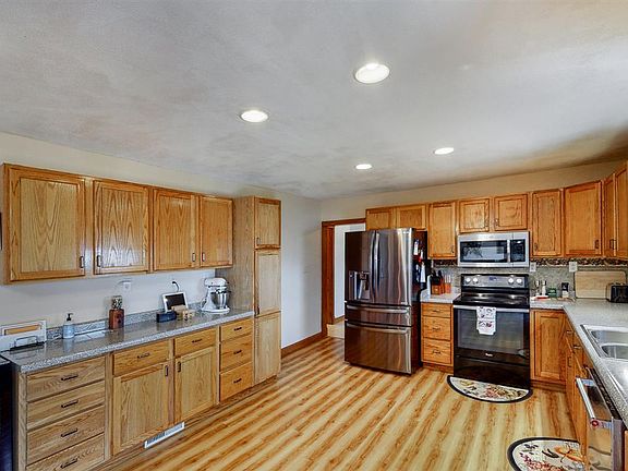 Coveted home, completely remodeled! 9' poured concrete basement. Oversized fenced backyard. Across the street from city park & walking distance to schools. Newer windows, solid core interior doors, electrical & plumbing. Spacious main floor laundry w/ custom cabinetry. Within last 4 years new basement bathroom & tv room, composite decking & yard fencing & new metal siding on storage buildings. Oversized 26x28 attached garage, 20x26 detached garage (heated & insulated) & 2 spacious storage buildings.