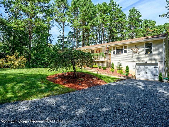 Welcome to this charming raised ranch nestled on a wooded one-acre lot. This home features 3 bedrooms and 2 full baths with a full unfinished walk-out basement. This home boasts a warm and inviting ambiance with oak hardwood floors throughout and rustic knotty pine wood floors in the kitchen. Situated across the street from the Collier Mills wildlife preservation area, you'll enjoy the beauty of nature right at your doorstep. Additionally, a new above-ground oil tank has been installed. This raised ranch combines the best of both worlds: a serene natural setting and modern comforts. Great location, close to Rt 195 and the Garden State Parkway. Don't miss the opportunity to make this charming home your own.