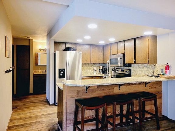 Located on the door steps of the Ski Slopes is this 2 Bed/2 Bath, 930 SF Condo in the Giant Steps Condominiums. With ski in ski out access to the Giant Steps Ski Lift and Tubing Run gives this condo the prime location in Brian Head. The condo is located on the highly sought after first floor and is an end corner unit providing more natural light. Inside the condo has been completed updated with new flooring and paint throughout the condo and counter tops and appliances in the kitchen. The bathroom's have also been updated. You will enjoy the fireplace for heat along with the electric baseboard heaters. The monthly HOA is $350/month which provides heated underground parking, laundry facilities and a rec center with game room, sauna and hot tub. Brian Head's general store, pond, park and picnic area is just a short walk away. The condo is currently used as a short term rental and has an excellent renting history. The condo comes furnished & ready to enjoy.