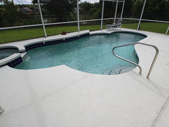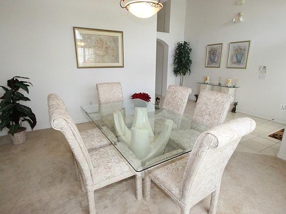Price Lowered! Beautiful WATER VIEW! Located minutes from Disney in a small nicely kept neighborhood. This four bedroom three bathroom home has been gently used by the owner as a vacation home and has not been used as a rental home, but it is being sold fully furnished and can be used as a rental or a private residence. There is a formal dining room and an eat in kitchen. There is also a bedroom, in addition to the master, that has it own private bathroom. The view of the lake behind the home from the pool deck is stunning. The lot is pie shaped and there is a good distance between the neighbors. Reunion Golf Course and Champions Gate Gold Course are both within a ten minute drive and there is a large shopping center that includes a Publix approximately five minutes from the home. There is a nearly new a.c. system, and the pool and spa can both be heated with the large electric heater. Don't miss this one. Water views like this are nearly impossible to find in this area. Items in the master closet and in the locked pantry are not included. China in cabinet on either side of t.v. in living room is not included