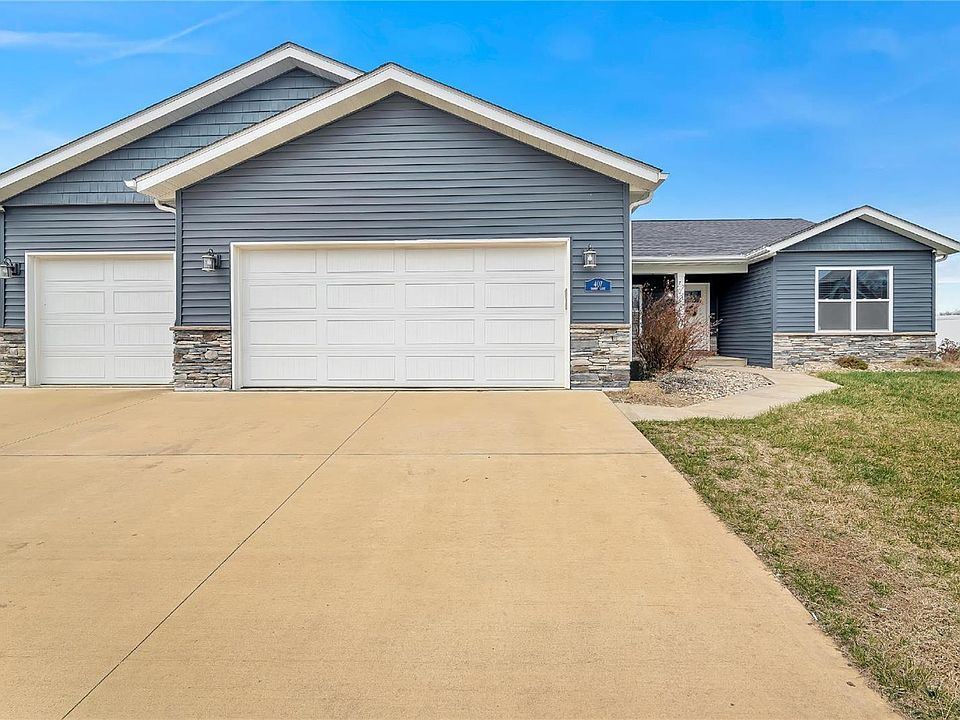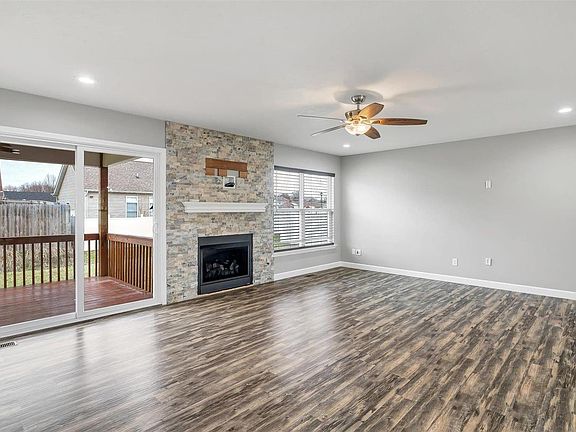 Welcome home to Emerald Valley Estates. Craftsman style ranch offers open concept & split bedroom layout. Modern finishes and upgrades allow you to move in! Gorgeous custom kitchen with solid surface counters and stainless steel appliances open with breakfast space open to Great room which is finished in up to date color schemes with gas fireplace and access to the back deck! Large Master suite walks out to the covered deck is completed by full bath with dual walk-in closets finished with custom organization. 2 nicely sized guest rooms, guest bath & laundry complete the main level. Basement is partially insulated, offers egress window for future room as well as bath plumbing. Great layout for a future recreational space! Home is upgraded with custom touches such as exterior stone accent, outdoor fan on covered deck with steps, whole house humidified, craftsman style doors, custom accent wall paneling, custom bath storage cabinets and more. Schedule your tour today, it won't last!