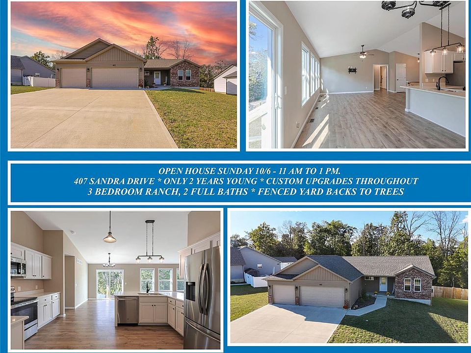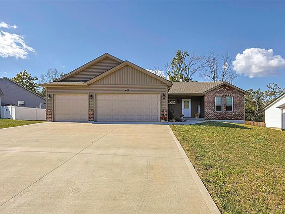 CRAFTSMAN RANCH HOME WITH MARVELOUS UPGRADES! Only 2 Years Young! Open Concept, Split Bedroom Design. 3 Bedroom, 2 Bath Large Eat-In Kitchen, Upgraded Quartz Counters and Breakfast Bar, White Shaker Cabinets, SS/Blk Dishwasher, Microwave & Electric Stove/Oven, Walk-In Pantry. Vaulted Family Room & Master Bedroom. Lg Master Suite w/Dual Sinks, Shower, Adult Height Vanities, Larger Bedrooms. Main Floor Laundry. Oil Rubbed Bronze Fixtures & Hardware. Arched Doorways, Cased Windows, Pocket Doors, High End Lighting, Wide Staircase, Ceiling Fans in Great Room & Master. Coffered Ceiling & Walk in Closet in Master Bedroom. High End Laminate in Family Room, Laundry, Baths, Hall & Entry Way. Walkout Lower Level has Egress Window for 4th Bedroom & Full Bath Rough-in. Pre-framed Rooms Making it Quick to Add Lower Level Living Space! Board & Batten Siding, Oversized 3 Car Garage w/Extra Wide Driveway. HUGE Fenced Yard that Backs to Trees and Common Ground. HIGH END FINISHES THROUGHOUT!