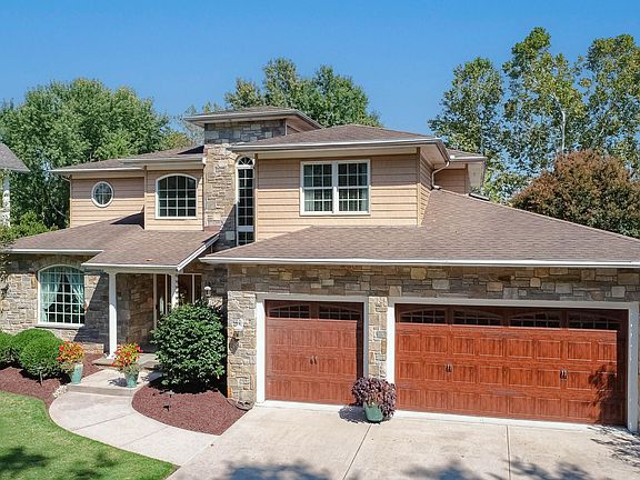 Welcome to 407 Shore Drive, a breathtaking 6,000+ square foot waterfront estate where timeless elegance meets modern luxury. This five-bedroom, five-and-a-half-bath residence with a three-car garage, featuring a solar exhaust fan and upgraded insulation, has been thoughtfully designed for comfort, sophistication, and an unparalleled lifestyle on the water (with no flood insurance required). The home opens with a grand 21' x 18' foyer accented by stately columns, elegant archways and crown molding, setting the tone for the refined design found throughout. A formal sitting room with a picture window provides an inviting space for guests, while the elegant dining room is ideal for hosting unforgettable gatherings. Hardwood floors flow seamlessly throughout the main and upper levels, complementing the abundant natural light and captivating water views from both front and back of the property. At the heart of the home lies a chef’s dream kitchen, boasting Cambria quartz countertops, a five-burner gas cooktop, stainless steel appliances, a trash compactor, a walk-in pantry, and a dedicated prep area perfectly suited for both intimate dinners and large-scale entertaining. The sunlit breakfast nook and expansive bar seating encourage everyday connection, while the open concept living room showcases custom built-ins, whole house speaker system, a gas fireplace, and sweeping views of the water. A stylish half bath, wine closet, and an updated laundry room with custom cabinetry, quartz countertops, tile flooring, upgraded washer/dryer, and a deep wash sink complete the main level. A custom-carpeted staircase leads to four well-appointed bedrooms on the upper level. The primary suite impresses with tray ceilings, a cozy gas fireplace, and a private Trex balcony overlooking the water. Its spa-inspired bath includes a whirlpool soaking tub, a tiled walk-in shower, dual granite vanities, and a spacious walk-in closet. Bedroom two enjoys its own en-suite bath, while the third and fourth bedrooms share a Jack-and-Jill bath with granite dual sinks and a tub/shower combination, providing comfort and privacy for family and friends. The lower level is designed for entertaining and includes the fifth bedroom with a Jack-and-Jill bath, a full bar with granite countertops, pool and card table areas, and a family room finished with custom carpeting, epoxy and tile flooring. Ample storage is available, along with two new Bosch high efficiency furnaces (2023 & 2024), adding peace of mind for years to come. Outside, the property transforms into a private waterfront retreat. A 31' x 18' luxury outdoor kitchen, a 21' x 14' slate deck, and a recessed hot tub set into a low-maintenance deck create the perfect setting for relaxation and entertaining. A full outdoor bathroom provides convenience after a day on the water, while extensive night lighting and frost-free hose bibs elevate the exterior. For boating enthusiasts, the property boasts a 110' private pier equipped with 50-amp and 30-amp service, dual boat lifts (24,000 lb. and 10,000 lb.), two jet ski floating docks, full water, elevated dock lighting and electric connections. Whether your passion is boating, jet skiing, paddleboarding, or simply relaxing by the water, this property offers it all. 407 Shore Drive is more than a home, it is a lifestyle of luxury, leisure, and waterfront living at its finest.