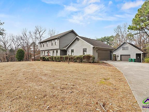 Over an acre in Warner Robins! 4-bedroom, 2.5-bath, 2-story home with detached wired, 2-story workshop that has a half bathroom. Inground pool with a deck off to the side. Home contains formal dining room, separate breakfast area, wood-burning fireplace, huge Great Room with bay windows overlooking wooded backyard, and screened porch. Kitchen has backsplash, pantry, stainless steel appliances, including refrigerator and double oven. Jetted tub, ceiling fans, gutters and separate Laundry Room.