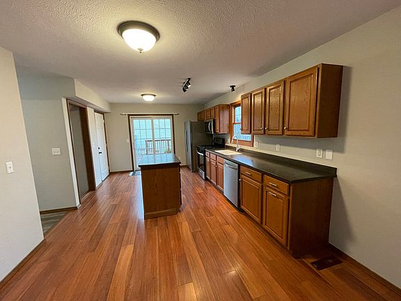 This 3 BR, 2.5 Bath 2-story home with partially finished basement has just been updated and ready for you to move in! The open concept kitchen with wood floors has a separate island (moveable) for entertaining. The Corian countertops blend in beautifully with the oak cabinets. The kitchen opens to the Family room so you'll have plenty of room for family and friends. You'll love the wood fireplace with gas starter for easy operation. The partially finished lower level has a finished office, and Family Room. The sump pump features a battery backup (not warranted) and a sealed cap. You'll love the heated garage (gas heater). Extra storage in the backyard shed is a definite plus. It also has electric running to it! UPDATES in 2023 include: Freshly painted, all new flooring except Kitchen, new light fixtures, new S/S appliances, new garage door motor. The battery backup for the sump pump is not warranted, but believed to work.
