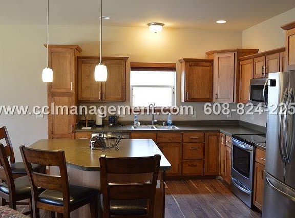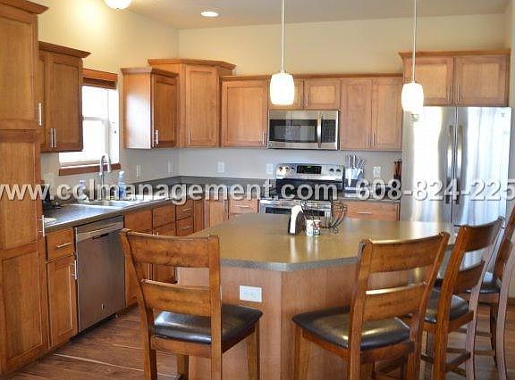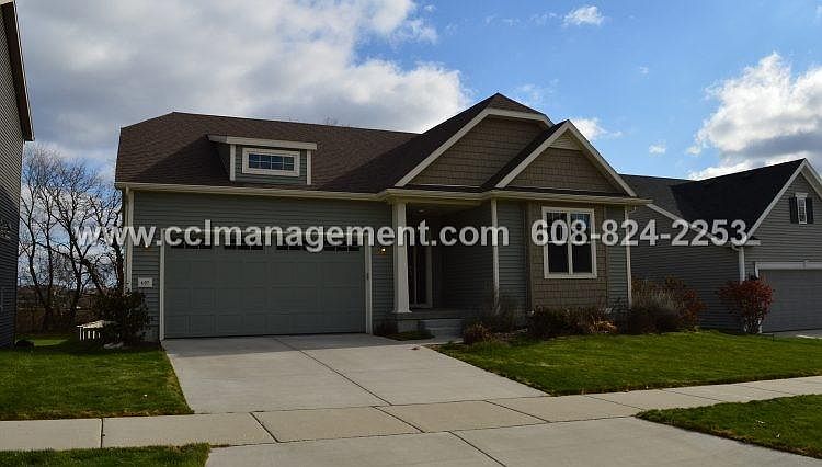 Rent this immaculate ranch in Verona. This recently built home is located in the new Birchwood Point neighborhood off Mineral Point with quick access to Verona, Madison and Middleton. The front door leads to an open floor plan with beautiful laminate wood floors and an island kitchen. The fully equipped kitchen features stainless steel appliances, a breakfast bar, ample storage and overlooks the living and dining room. The dining room has a walkout to the back deck. Master suite is off the living room and offers a private full bath and a walk in closet. Down the hall at the front of the home is 2 more bedrooms with a full bath to service them. An unfinished basement provides tons of storage space. Outside this home has a 2 car garage, front porch, back deck and a large fenced in backyard. Olson, Toki and Memorial High School! ADDITIONAL FEATURES 2 Car Garage, Washer and Dryer, Back Deck, Breakfast Bar, Central Air, Dishwasher, Fenced Yard, Front Patio, Great Storage, Kitchen Island, Large Back Yard, Main Level Bedroom, Main Level Master Suite, Professionally Managed, Stainless Steel Appliances and Storage Space. 12 Months +