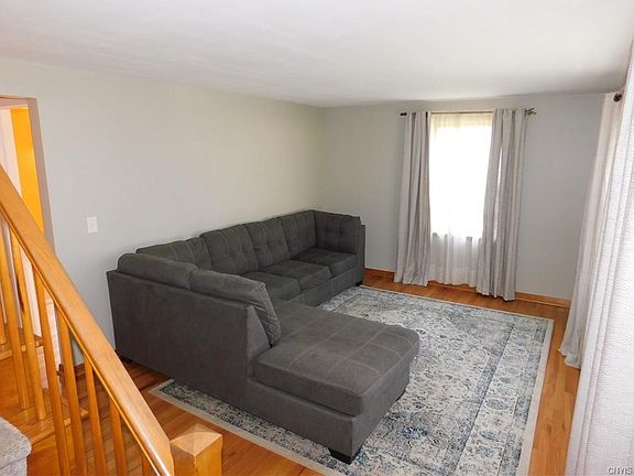 Delayed showing/negotiation. No showings until Friday 7/19/19 at 9AM and no negotiations until Sunday 7/21/19 at 6PM. Great opportunity to own this well cared for Cape Cod in East Syracuse-Minoa School District, with a large partially fenced in private backyard and concrete patio. First floor formal dining room or possible additional bedroom, eat in kitchen, bedroom and full bath. Hardwoods through first floor except kitchen and in great condition. Second floor 2 bedrooms with half bath. For summer entertaining, there are screens in garage that fit the garage door. Improvements include some freshly painted interior walls, added 4 new interior doors, fenced in the right side of the yard, new furnace in 2018, and 2 new toilets. Reach out today to schedule a private showing!