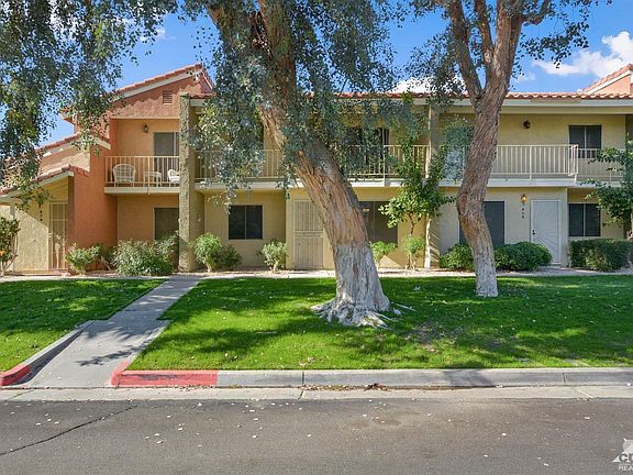Beautiful upgraded condo, with 3 bedrooms and 2 bathrooms. You'll find the living room, dining room, kitchen, one bedroom and one bathroom on the main floor. There is a very large private fenced patio, perfect for outdoor dining and entertaining, located at the rear of the condo, between the ground floor of the condo and the two car garage. Upstairs, you'll find two bedrooms and one Jack-and-Jill bathroom. The larger of the two upstairs bedrooms opens to a large balcony with beautiful mountain views. Offered turnkey furnished. Mountain View Falls is a gated community centrally located in Palm Desert, with a community club house, pool, spa, tennis and basketball courts. It is located close to the JW Marriott Desert Springs Resort & Spa, Desert Willow Golf Resort (with steeply discounted rates for Palm Desert residents), El Paseo, Westfield Mall, McCallum Theater, Agua Caliente Casino Resort Spa and much more.