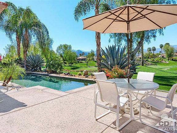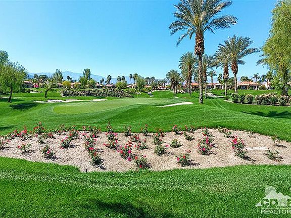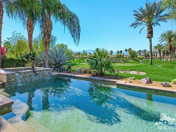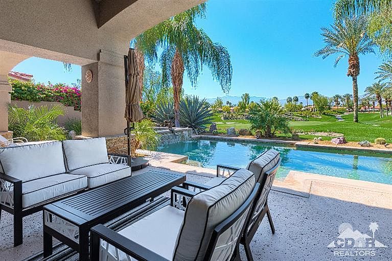 One of a kind! South facing open great room floor plan with fabulous views over multiple golf holes. Setback from the 17th Grove green with views but offering complete privacy from this over sized lot complete updated desert landscaping, huge paver driveway & walkway, sparkling salt water pool/spa & BBQ area. The stunning interior space showcases the great room, formal dining, fireplace & custom entertainment area all with fabulous views of the golf course. Accents include granite niches, counters, custom office including murphy bed. The master is located adjacent to the patio, remodeled split master bath highlighted by walk thu shower, jetted tub plus 2 walk-in closets with privacy from the other en-suite guest rooms. Just imagine enjoying this one of a kind full 3 car garage with golf cart space complete with security cameras. Offered furnished. This spectacular Indian Ridge property located close to famous El Paseo restaurants & shopping.