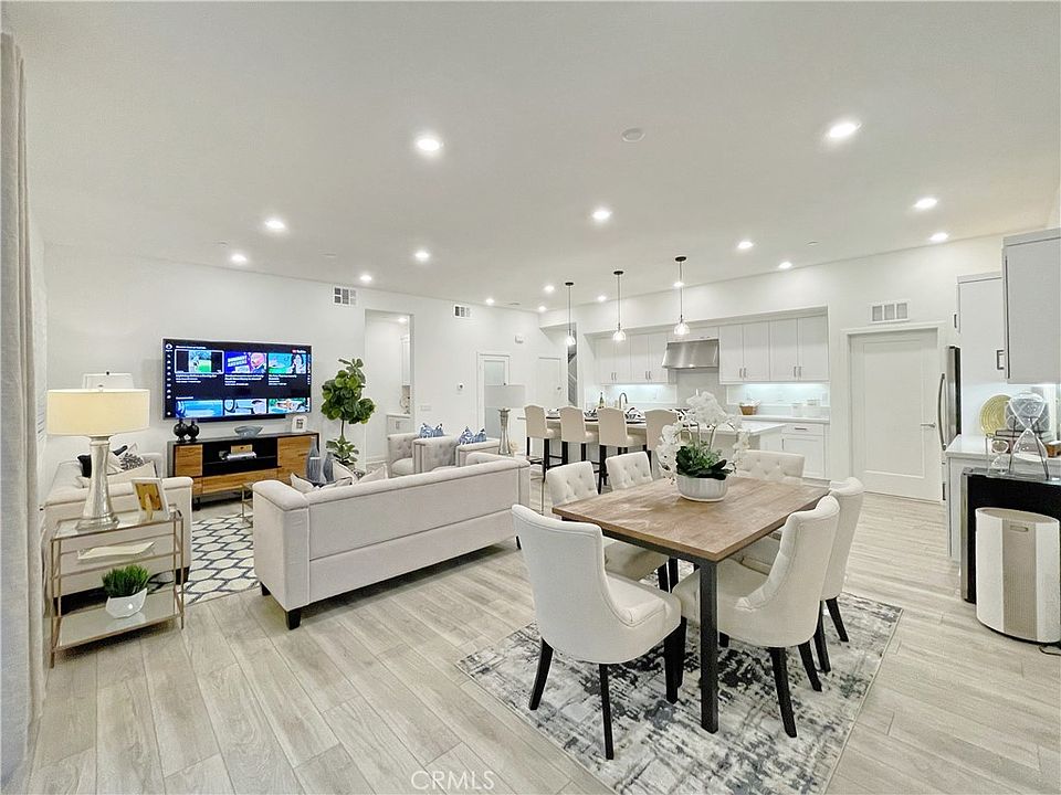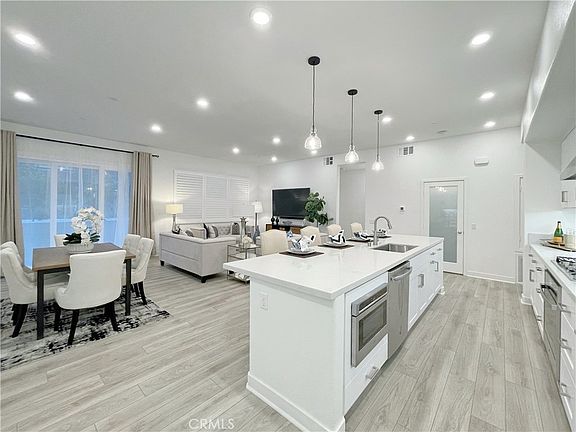 Experience elevated living in this beautifully upgraded corner unit within the sought-after Levity community at Tustin Legacy. Spanning 2,183 sq. ft., this light-filled residence offers some of the community’s best views of the park and The Hangar. Beautifully designed, this home offers 3 bedrooms and 3 bathrooms. The first floor features 2 bedrooms, including the primary master suite with a private bath, dual sinks, and a spacious walk-in closet, perfect for guests or extended family. The second floor hosts the third bedroom, a private suite with its own bath and walk-in closet. Additionally, on the third floor you will find the dining area that flows effortlessly onto a covered balcony with sweeping views. Lots of natural lighting throughout the home! The chef’s kitchen is both stylish and functional, complete with quartz countertops, stainless steel smart appliances, a walk-in pantry, and a spacious center island with bar seating. The third-floor deck offers the perfect spot to relax or entertain while taking in vibrant sunsets. Additional highlights include a two-car garage, designer finishes throughout, and access to resort-style amenities such as a pool, spa, BBQ area, and Victory Park. Located just minutes from The District at Tustin, top-rated schools, shopping, and dining, this rare lease opportunity combines modern comfort with an unbeatable location.
