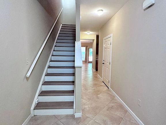 This is a beautiful unfurnished Townhome with garage located in the quiet Twin Lakes neighborhood. There is a spacious back porch and has direct access to the living area and kitchen with beautiful Travertine flooring. The second floor boasts brand new Luxury Vinyl Plank flooring in the 3 bedrooms and 2 baths. The master bedroom has two large windows with a view of the lake as well as a big walk-in closet and dual sinks in the bathroom. Washer and Dryer is conveniently located upstairs.