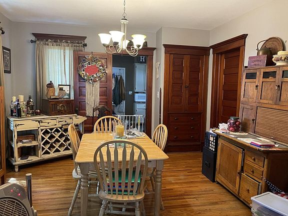 You will love this charming home! This home offers both a front and back porch where you can relax after a long day. The foyer is warm and welcoming with its natural wood floors and open staircase. The 1 living room is open to the dining room and also boasts hard wood floors and beautiful woodwork! Updated kitchen and first floor half bath. One bedroom is located on the first floor, the other two and full bath are located upstairs. Nice sized yard and 1 car garage. Newer windows and roof!