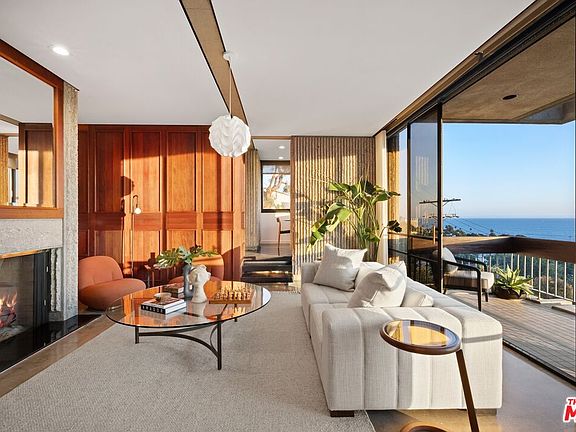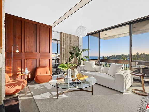 This stunning property is perched overlooking the Santa Monica Canyon at the base of Amalfi Drive with sweeping panoramic views from every level, each with its own ambience; all with ocean breezes, warmth and seamless harmony in an idyllic canyon setting. The main level features polished concrete floors, formal dining room and kitchen with adjacent breakfast room showcasing spectacular views of the Pacific Ocean. There is also an expansive living area with a walk out balcony, and a reading alcove on the northwest side. Each room features truly fabulous views from the ocean to the mountains. A beautiful dual-sided entryway, laundry room, and guest powder room complete the common living space. Downstairs, three bedrooms and two baths provide a separate sleeping level with balcony and access to the garden below. Additional walk-in safe/wine cellar and an office alcove complete the lower level. Upstairs, the Master bedroom and bath, with full room shower, offer a private escape from the hustle and bustle of the city. Another balcony provides separate ocean viewing over a morning coffee or evening cocktail. The rooftop level spans over 900 square feet and is a breathtaking highlight of the property. Whether it be al fresco dining at home, an intimate gathering with friends, or a larger party below the setting sun, the space is an entertainers' paradise. The 360 degree views are truly a sight to behold providing the best of Santa Monica and the Pacific Palisades. This highly sought after neighborhood is walking distance to the beach and shops and a short drive to the Palisades Village. This is truly a timeless jewel in the heart of Los Angeles.