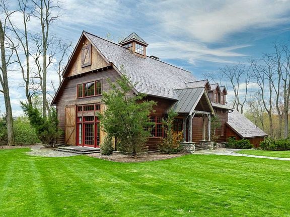 Offering the ultimate country residence for a fabulous country life, this exquisite Millbrook estate home has been recently constructed utilizing the framework of 2 antique barns. Throughout the home are touches that are redolent of times gone by but all presented within a modern functional home that is ready for the 21st century. Reclaimed hardwood flooring and doors, hand forged iron balustrades and door hardware, stacked stone fireplaces, a slate roof and inventive use of antique windows all contrast beautifully with the state-of-the-art kitchen, modern bathrooms and electronic features throughout the house. The spacious great room is the perfect place to entertain or just relax. Under its 40' ceiling there is a grand stone fireplace, handcrafted bookcases and display shelves, a wet bar and three sets of French doors that lead to two stone patios. The chef's kitchen has all of the modern equipment any cook could desire. The four ensuite bedrooms offer generous space for all of your guests to enjoy. For the car enthusiast there is a vast garage/workshop space that can accommodate six to eight cars, has its own half bath and offers 40' of head space as well. Situated on 11.57 acres in the heart of rural Millbrook you're still less than ten minutes from town and close to all that this area has to offer.