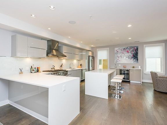 This exceptional 2015 new construction home offers a generous, open floor plan that allows for easy and elegant living & entertaining. The chefâs kitchen spares no detail w/ Viking appliances, quartz counters, European cabinets, waterfall island, & wet-bar w/ wine fridge. The living/dining area provides plenty of room for seating around the modern gas fireplace plus full-sized dining w/ designer chandelier. The spacious master bedroom offers a large walk-in closet & a marble master bath w/ double vanity & steam shower. The 2nd & 3rd bedrooms w/ excellent closet space & large windows offer a flexible layout to fit any lifestyle. Hardwood floors, speakers, & custom shades throughout, 2nd bath w/ jetted tub & frameless glass enclosure, elegant lighting, laundry room w/ LG W/D, & central air. Common roof deck w/ gas grills, professionally managed, pet friendly w/ enclosed pet area. Easy access to restaurants, shops, the Seaport, & 90/93. Elevator access garage parking space included!