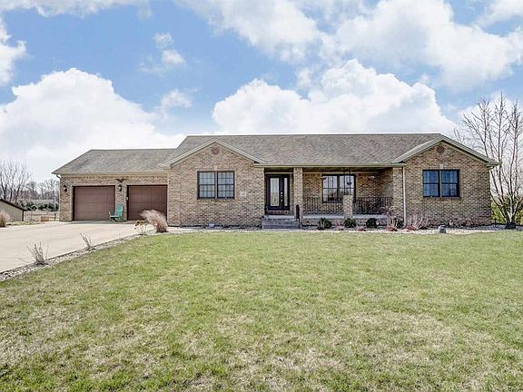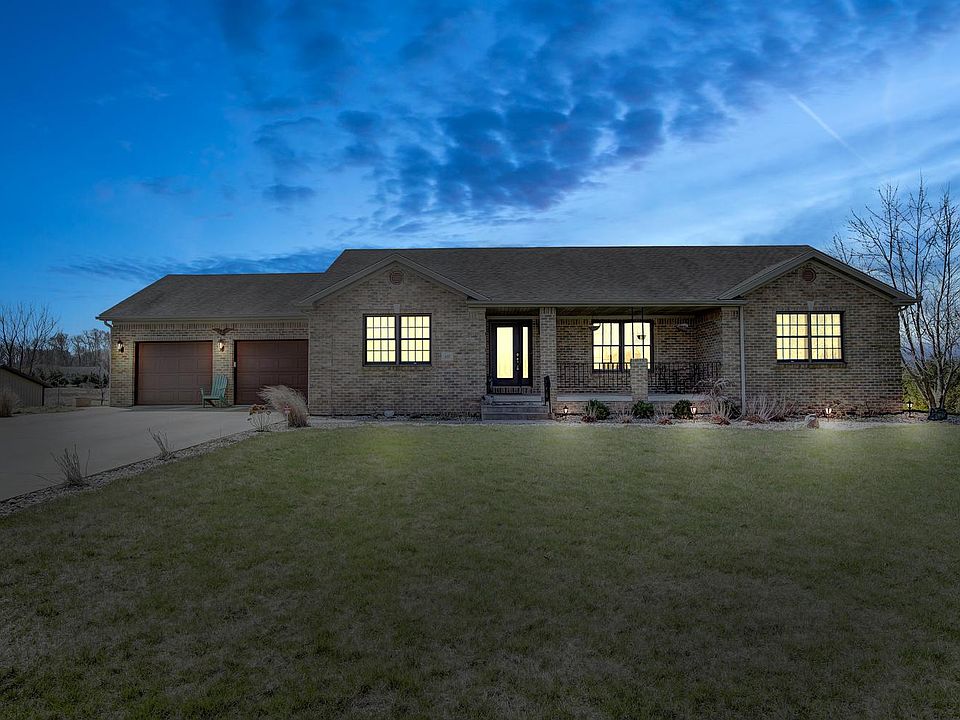 Beautiful & Serene Country living in All Brick Ranch on full walk out basement and 4.44 Acres! Home has over 2,700 Sq Ft finished with vaulted ceilings in living room and dining area, split bedroom floor plan. 4 Bedrooms, 3 Baths with all New kitchen appliances by Kenmore, New 80 gallon water heater and Energy Efficient furnace by Lennox. The mudroom from garage is plumbed for laundry. Two gas log fireplaces in living room & family room. Central Vac & Solid wood doors throughout the home. Laundry w/utility sink and LL bath has downpour shower head, also large den/office in LL. An invisible pet fence installed in back yard. The new 72x48 outbuilding has 3-14' overhead doors, 2 electric panels 1-100 AMP & 1-200 AMP also 1 outlet of 220 AMP and plumbed for a bathroom. An additional outbuilding 36x24 for storage or lawnmowers. Great 11x18 deck off of dining area for grilling. Beautiful landscaping and so much more!